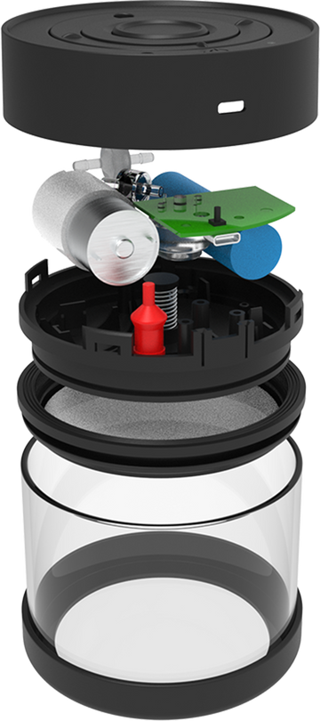 Our unique and innovative system that constantly monitors the pressure inside of the jar and automatically removes air as needed. This helps slow down elemental oxidation.